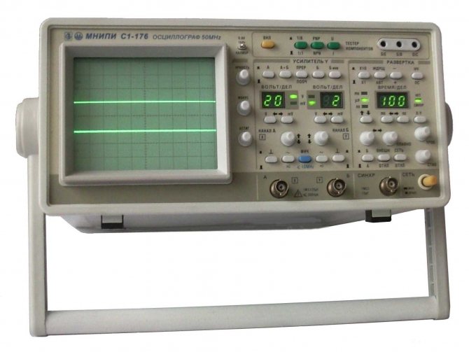 Прибор, используемый для наглядного наблюдения за формой сигнала, называют осциллограф. Им можно измерить напряжение в зависимости от модели до гигагерца. Устройство бывает аналоговым, цифровым и стробирующим. Осциллограф считается устройством для профессионалов и используется для радиоэлектронных приборов.